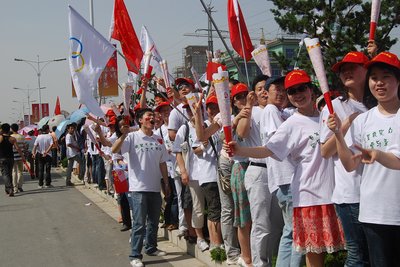 我校同时派出青年医护员工组成方阵,在圣火传递现场为奥运加油!