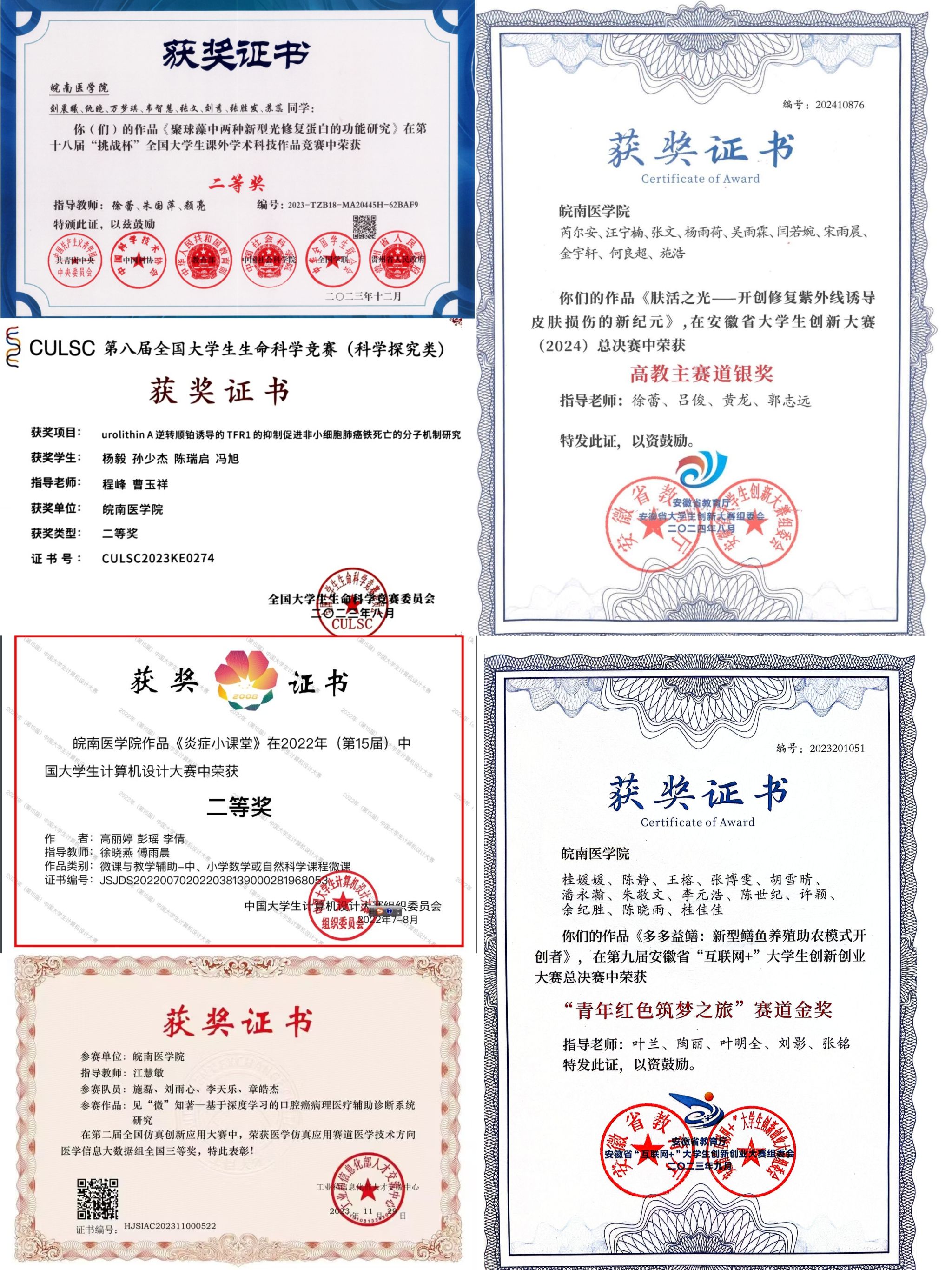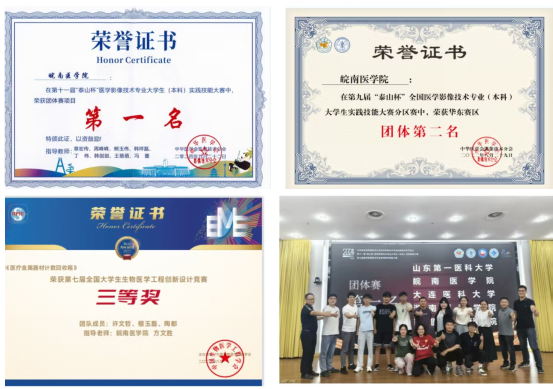 学生学科技能竞赛成果丰硕。在第九届“泰山杯” 全国医学影像技术专业(本科)大学生实践技能大赛中,学院首次参赛即斩获团体第二名;获“全国大学生生物医学工程创新设计竞赛”三等奖;在第十一届 “泰山杯” 全国医学影像技术专业(本科)大学生实践技能大赛中实现历史性突破,学生团体勇夺全国第一名,单项获得4个第一名、2 个第二名、1个第三名。