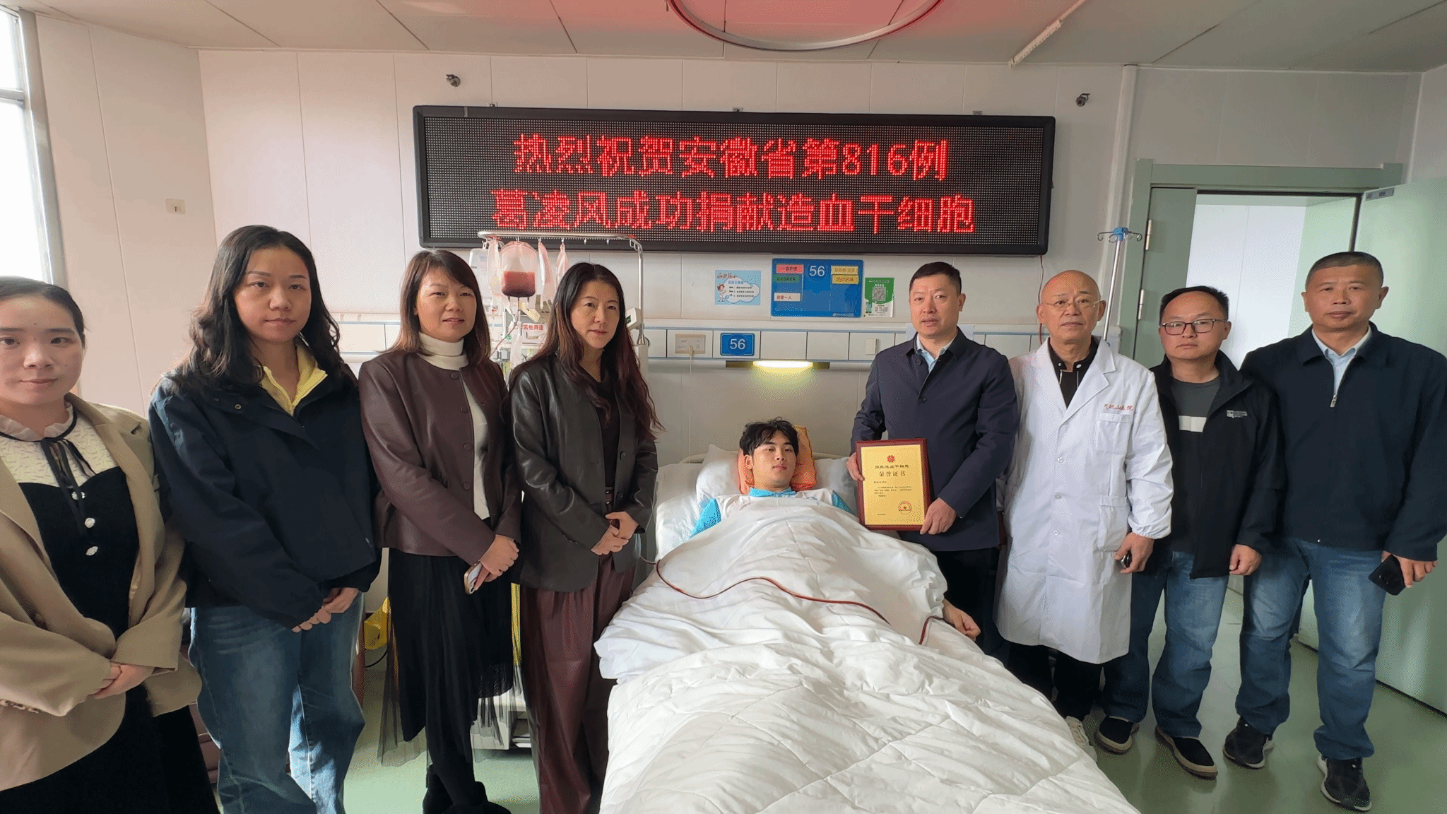 爱心接力,生命续航。10月27日,在我校第一附属医院造血干细胞采集室内,临床医学院2022级临床医学专业葛凌风同学平静地躺在病床上,鲜红的血液通过血细胞分离机缓缓流淌,历经近5小时采集,337毫升造血干细胞混悬液被成功分离。这份承载着生命希望的“火种”将为一名素不相识的血液病患者点燃重生之光。葛凌风同学成为我校在校生第8例、安徽省第816例造血干细胞捐献者。