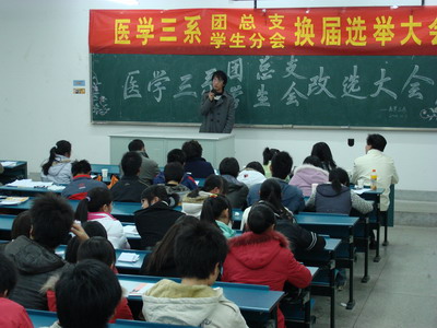 首先,上届学生会主席林峰同学对上一学年的学生会作了回顾与总结,唐传莉副主任作了热情洋溢的讲话,她对上一届团总支、学生分会的工作以及所取得的成绩给予了高度评价和充分肯定,同时希望新一届团总支、学生分会能够总结吸取上届学生干部工作的经验教训,刻苦学习,扎实工作,开拓创新,使医学三系的学生工作再上一个台阶。