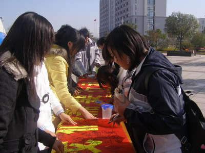 活动吸引了众多同学前来参加,每一位同学都留下了心里的感恩话语,仅仅一个小时,长达八米的横幅上就签满大家的姓名。在活动中,同学们纷纷表示,在我校50年校庆来临之际,本着对母校、对亲人、对师长、对朋友的关切与感激,一定会将心中的情感转化为实际行动,不负他们的殷殷期盼,争取早日成才报效祖国。