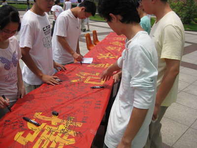 本次活动共分三个部分,首先在食堂门口举行一次签名活动。其次在学生中发放宣传单,要求大家从我做起,从小事做起,从身边做起。再次是把相关内容制作成展板,放在校园的橱窗中,进一步进行宣传。