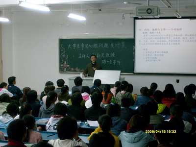 ――医学一系2007级成功举办大学生心理健康讲座 为帮助大学生正确认识和处理常见的心理问题,让每一位学生能顺利完成学业,并学会树立正确的人生观、价值观和爱情观。医学一系2007级党支部特邀我校心理学教研室主任、硕士生导师刘新民教授于4月15日晚在东104教室作了题为“大学生常见心理问题及处理”的讲座。 刘新民教授从现实事例入手,讲述了“专业思想与学习动力”、“人际关系与社会适应”、“学习知识与提高能力”、“恋爱与性心理”等方面的内容,此次讲座不仅增长了同学们心理健康方面的知识,加深了同学们对生活中常见心理问题的了解,同时也为同学们克服这些心理问题、适时调整自我,全身心投入学习生活提供了正确的指导。 (医学一系 李鸿显 杨钟会/文 杨钟会 陈昕/摄 宣传部 凤焱/审)