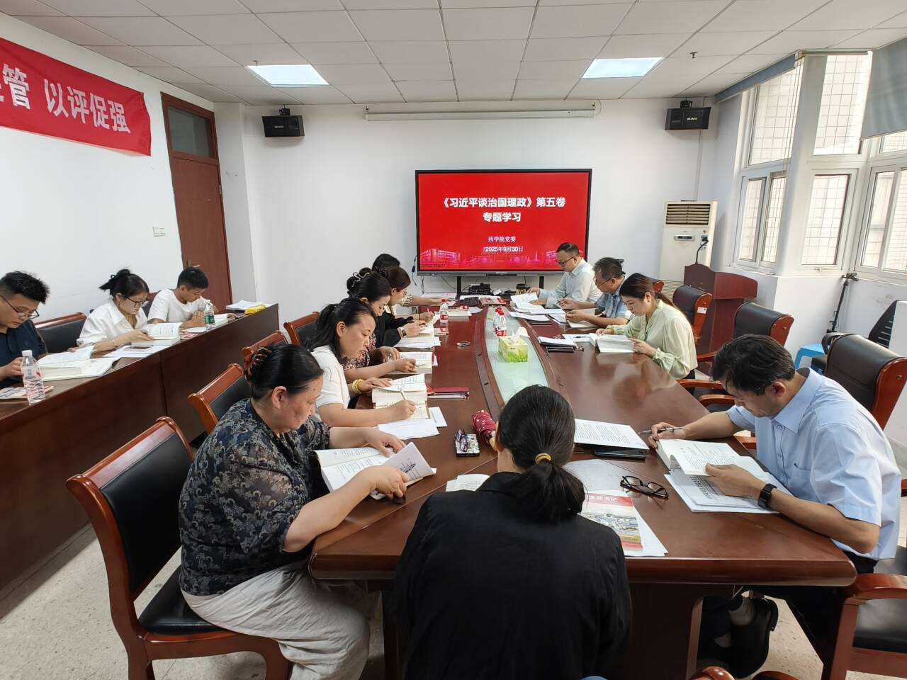 在专题研讨环节,与会同志围绕“深入学习《习近平谈治国理政》第五卷,以优良作风推动药学院高质量发展”主题,结合学院实际工作展开了热烈的现场研讨发言和抽点发言。
