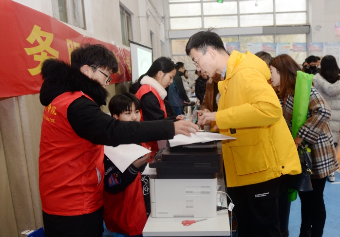 洽谈会现场气氛热烈,人潮涌动,场面火爆,秩序井然。用人单位通过展示信息展板、播放宣传片和发放宣传册等多种方式向同学们详细介绍单位概况、福利待遇、人才需求和发展空间等基本情况,并对前来咨询同学的提问作了一一解答,详细介绍应聘流程。各学院负责人和毕业班辅导员心系就业工作,积极与用人单位交流、沟通,介绍学院的专业特色,积极向用人单位推介毕业生,并在会场设立学院对接区,帮助同学们科学定位,理性选择就业单位。志愿者们精神抖擞,一直忙碌在招聘会现场,为招聘单位和前来求职的同学提供热情周到地服务。招聘会现场还有很多低年级同学自发到现场感受就业氛围,了解用人单位招聘流程和岗位需求,提前“试水”就业,尽早规划自己的职业生涯,为将来就业做好各方面的准备。