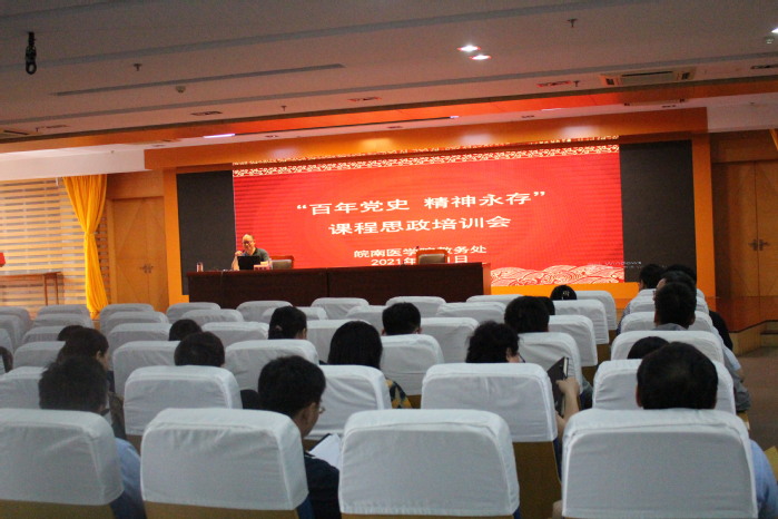 为提高广大教师将党史知识融入各类课程的能力,提升课程思政教育教学水平,6月1日下午,我校在图书馆三楼学术报告厅举行课程思政专题培训会,马克思主义学院副院长陶庭马作题为“新中国来之不易”的专题讲座。讲座由教务处副处长赵劲松主持,各二级学院教学院长、直属附院分管教学院长、教学秘书、各教研室主任及秘书等参加培训。