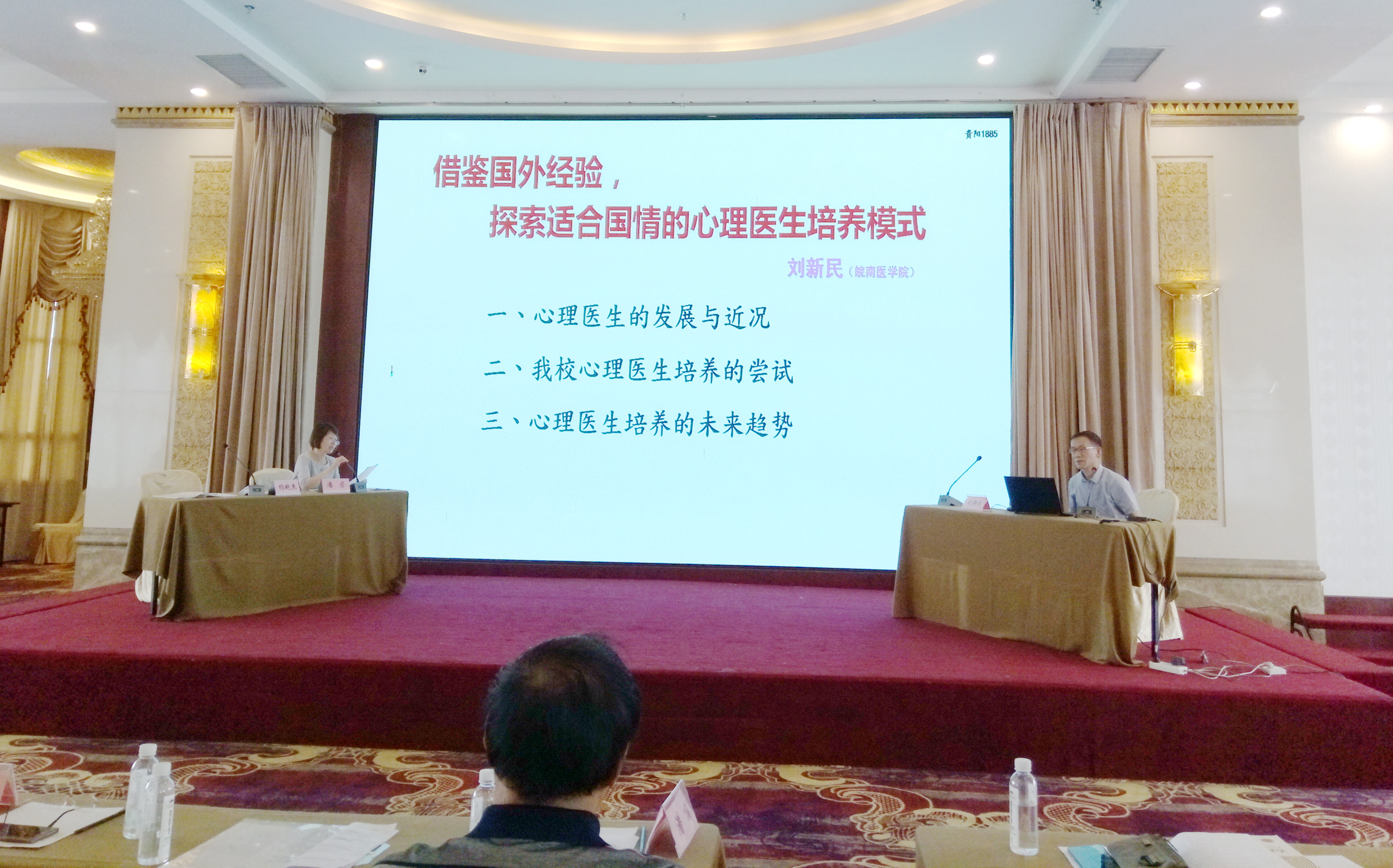 本次年会由贵州中医学院和哈尔滨医科大学承办。大会首先由贵州中医学院副校长刘文致欢迎词,对本次大会的顺利召开表示祝贺,对与会的各位代表表示热烈的欢迎。本次会议的主题主要包括四个方面:一是国家卫健委“十三五”应用心理学专业本科规划教材(第三版)首发式;二是全国高等院校应用心理学本科专业建设高峰论坛;三是医学心理学专业建设、教学与科研学术交流与研讨;四是中国高等教育学会医学心理学分会理事会换届选举。中国高等教育学会医学心理学会理事会理事长、教育部高等学校心理学类专业教学指导委员会委员杨艳杰代表学会作了《中国医学院校心理学专业发展的思考》报告,指出当前我国医学院校心理学专业建设的现状、面临的问题及空前的发展机遇,特别是中共中央、国务院印发《“健康中国2030”规划纲要》中指出要进一步“加强全科、儿科、产科、精神科、病理、护理、助产、康复、心理健康等急需紧缺专业人才培养培训”,这不仅对医学院校心理学专业人才建设提出了新的要求,更是对当前的心理学专业设置和人才建设提出了更高的目标,我们要及时紧跟我国经济发展和社会需求,要义不容辞夯实现有心理学专业建设基础、扎实推进我国医学心理学教育和心理学专业建设,以满足人民群众对心理健康教育等方面的需求。随后邬洁、潘丽主持国家卫健委“十三五”应用心理学本科专业规划教材(第三版)首发式,我校刘新民教授(《变态心理学》主编)作为代表受颁教材。邬洁对出席大会的各位主编、副主编、编委的辛勤付出表示衷心的感谢,本套规划教材(第三版)的出版发行将对我国应用心理学专业本科质量建设将起到非常重要的作用。会议还举办了十余场高水平心理学教学、发展和科研学术讲座,如北京大学医学部胡佩诚教授作了《医学心理学的发展前景展望——发展中国特色的应用心理学专业》、南京中医药大学杜文东教授介绍了申报《医学心理学》五年制本科专业(授予医学学士)的实践、齐齐哈尔医学院崔光成教授作了《对标规行搞好本科应用心理学专业建设》的报告,我校刘新民教授作了《借鉴国外经验探索适应我国国情的心理医生的培养》的讲座,受到与会代表的充分肯定与赞赏。