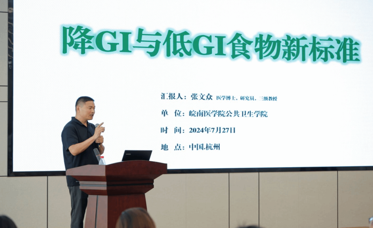 我校张文众教授作会议交流,指出《降食物血糖生成指数(GI)测定方法》和《降食物血糖生成指数标示规范》首次提出了降GI食物的概念,将降GI食物(Reduce GI Food,简称“rGI食物”)定义为衡量食物降低高GI食物能力大小的指标,经测定符合降GI食物标准的食物可以使用“rGI食物”标识。