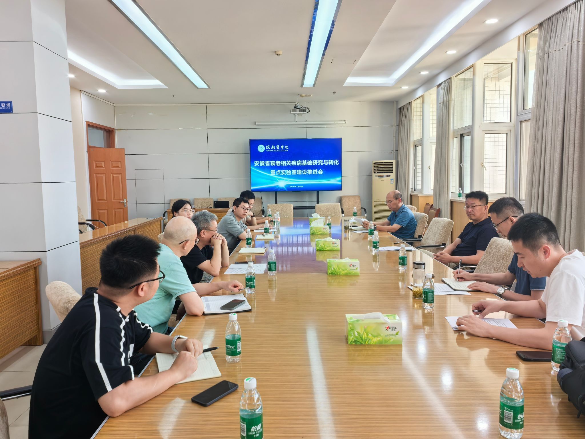 为切实提升学校实验室建设能力和水平,7月29日下午,学校举办安徽省衰老相关疾病基础研究与转化重点实验室建设推进会,会议由重点实验室主任汪舰教授主持,重点实验室带头人、骨干及科研处相关人员参加会议。
